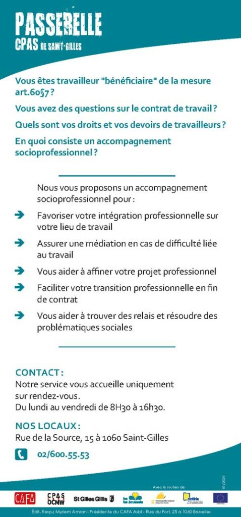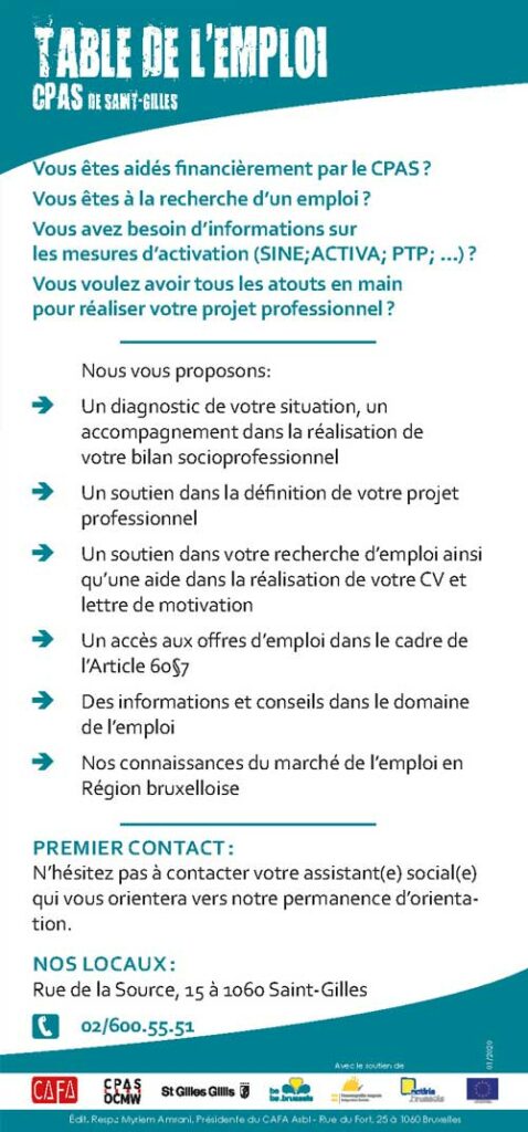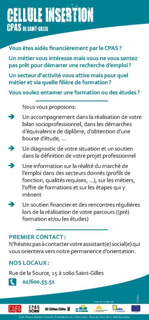 Développé par ses 4 secteurs, le dispositif d’insertion socio-professionnelle du CPAS de Saint-Gilles permet de manière résolument dynamique et adaptée de définir avec le public un projet concret à l’issue du processus d’intégration sociale.