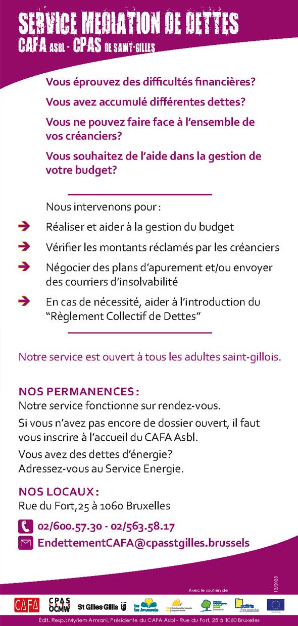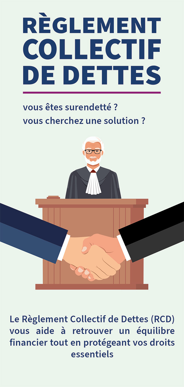 Si votre situation de surendettement est trop importante, il pourra vous orienter vers la procédure judiciaire du « Règlement Collectif de Dettes » et vous aidera à l’introduire. En cas de besoin, il vous soutiendra durant toute la durée du RCD.